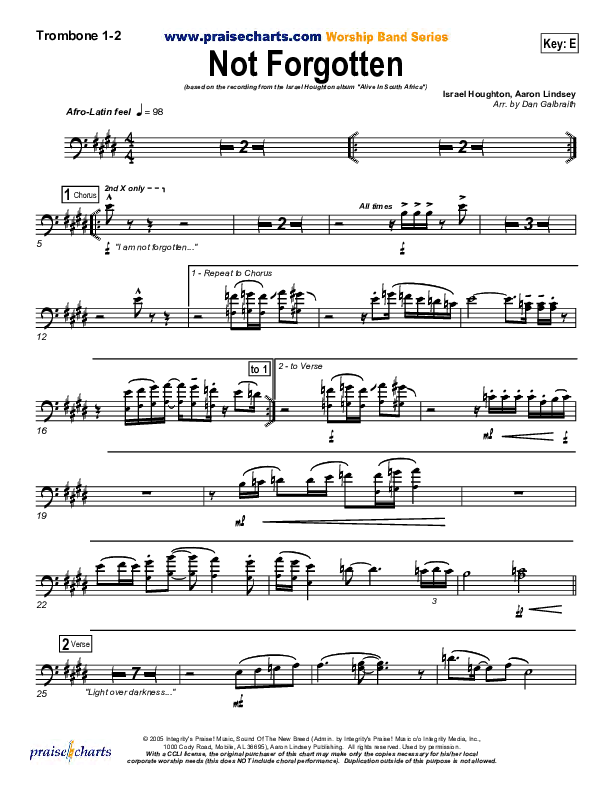 Not Forgotten Trombone Sheet Music Pdf Israel Houghton Praisecharts
