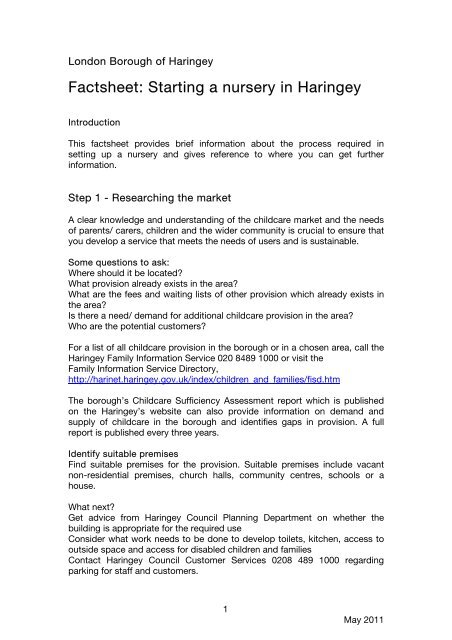 Factsheet Starting A Nursery In Haringey Haringey Council